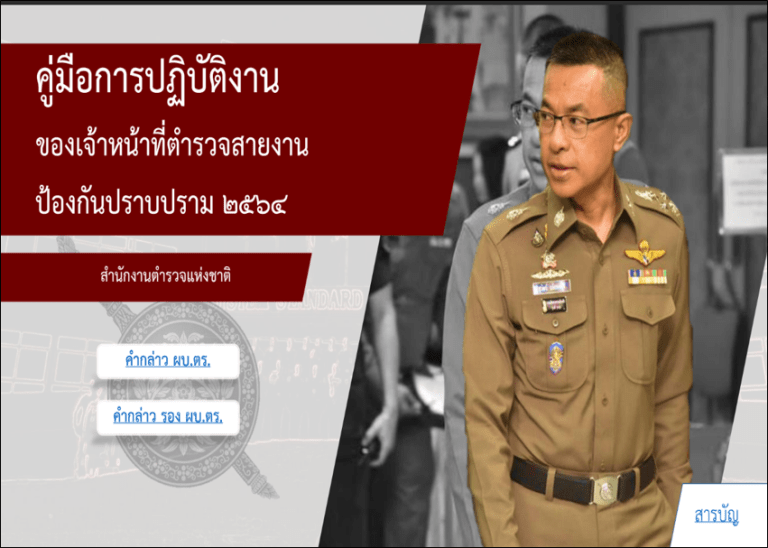 O8/68 คู่มือการปฏิบัติงานสำหรับเจ้าหน้าที่ 26 ธันวาคม 2566 by siriraj / ไม่มีหมวดหมู่ คู่มือปฏิบัติงานสำหรับเจ้าหน้าที่ข้อมูลเกี่ยวกับคู่มือหรือมาตรฐานการปฏิบัติงาน ตามภารกิจของแต่ละงาน (งานอำนวยการงานป้องกันปราบปราม งานจราจร และงานสอบสวน) พร้อมรายละเอียด (คลิกที่ภาพ) มาตรฐานการปฏิบัติงาน (Standard Operating Procedure : SOP) • มาตรฐานการปฏิบัติงานในการระงับเหตุของสำนักงานตำรวจแห่งชาติ • มาตรฐานขั้นตอนการปฏิบัติในสายงานจราจร • มาตรฐานขั้นตอนการปฏิบัติงานสายงานสอบสวน